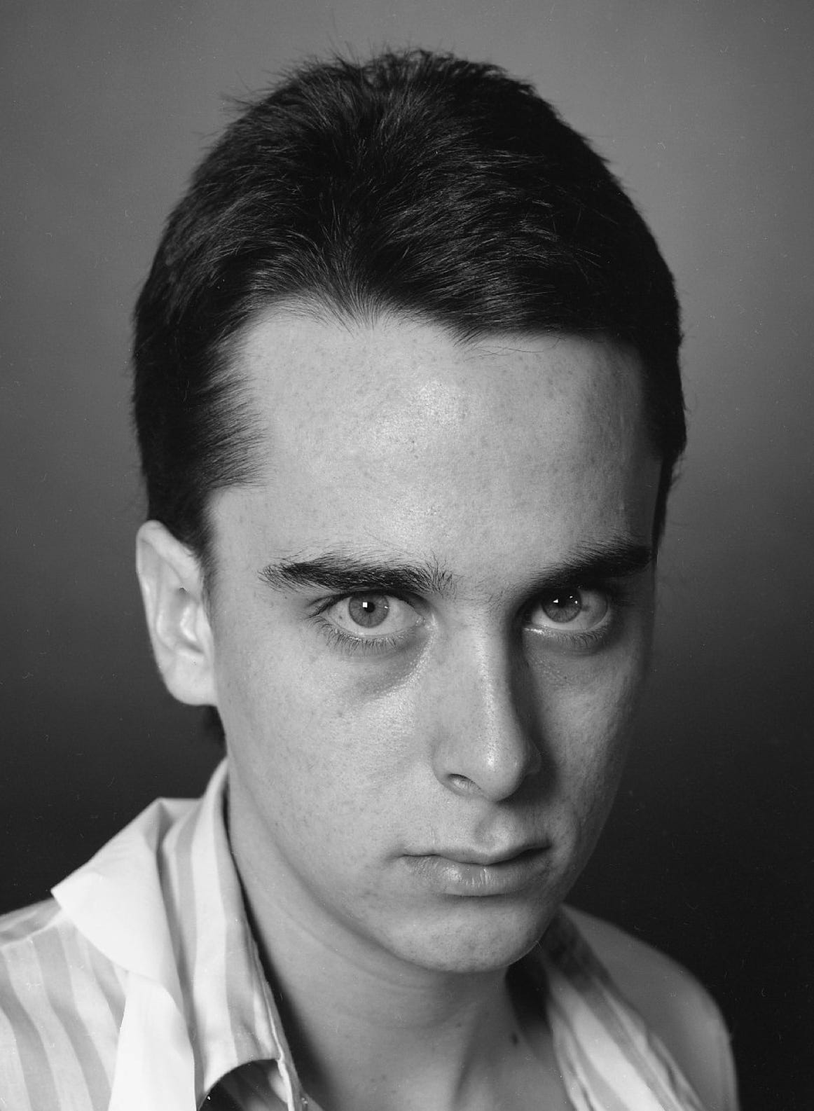 One of the cardinal rules of portraiture is to not use a wide angle lens. This was shot on a 4x5 camera and a very sharp 90mm lens. A “normal” lens for 4x5 is around 210mm. I can’t remember what caused me to do this — a lot of the assignments at Art Center were vague, but “Egghead Courtney” still looks pretty dashing.
